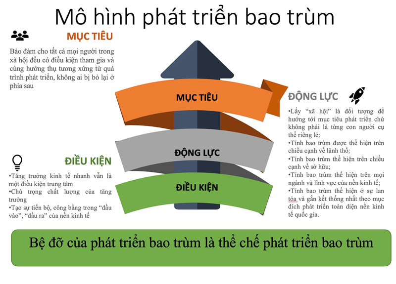 Thứ nhất, đề xuất mô hình phát triển bao trùm hệ thống doanh nghiệp với mục tiêu của mô hình là bảo đảm cho các loại hình doanh nghiệp (khu vực tư nhân, nhà nước và có vốn đầu tư nước ngoài) đều có cơ hội ngang nhau trong tiếp cận đầu vào và đầu ra của quá trình hoạt động kinh doanh với 5 động lực và 3 điều kiện thực hiện thể hiện qua hình 5 dưới đây: