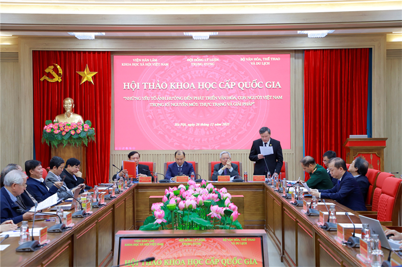 Sáng 26.12.2025, tại Hà Nội, Hội đồng Lý luận Trung ương phối hợp với Học viện Chính trị quốc gia Hồ Chí Minh, Bộ VHTTDL và Viện Hàn lâm Khoa học xã hội Việt Nam tổ chức Hội thảo khoa học cấp quốc gia với chủ đề “Những yếu tố ảnh hưởng đến phát triển văn hoá, con người Việt Nam trong kỷ nguyên mới: thực trạng và giải pháp”.