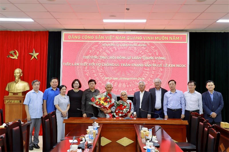 Lãnh đạo Hội đồng Lý luận Trung ương tặng hoa chúc mừng vợ chồng GS. Trần Thanh Vân và GS. Lê Kim Ngọc